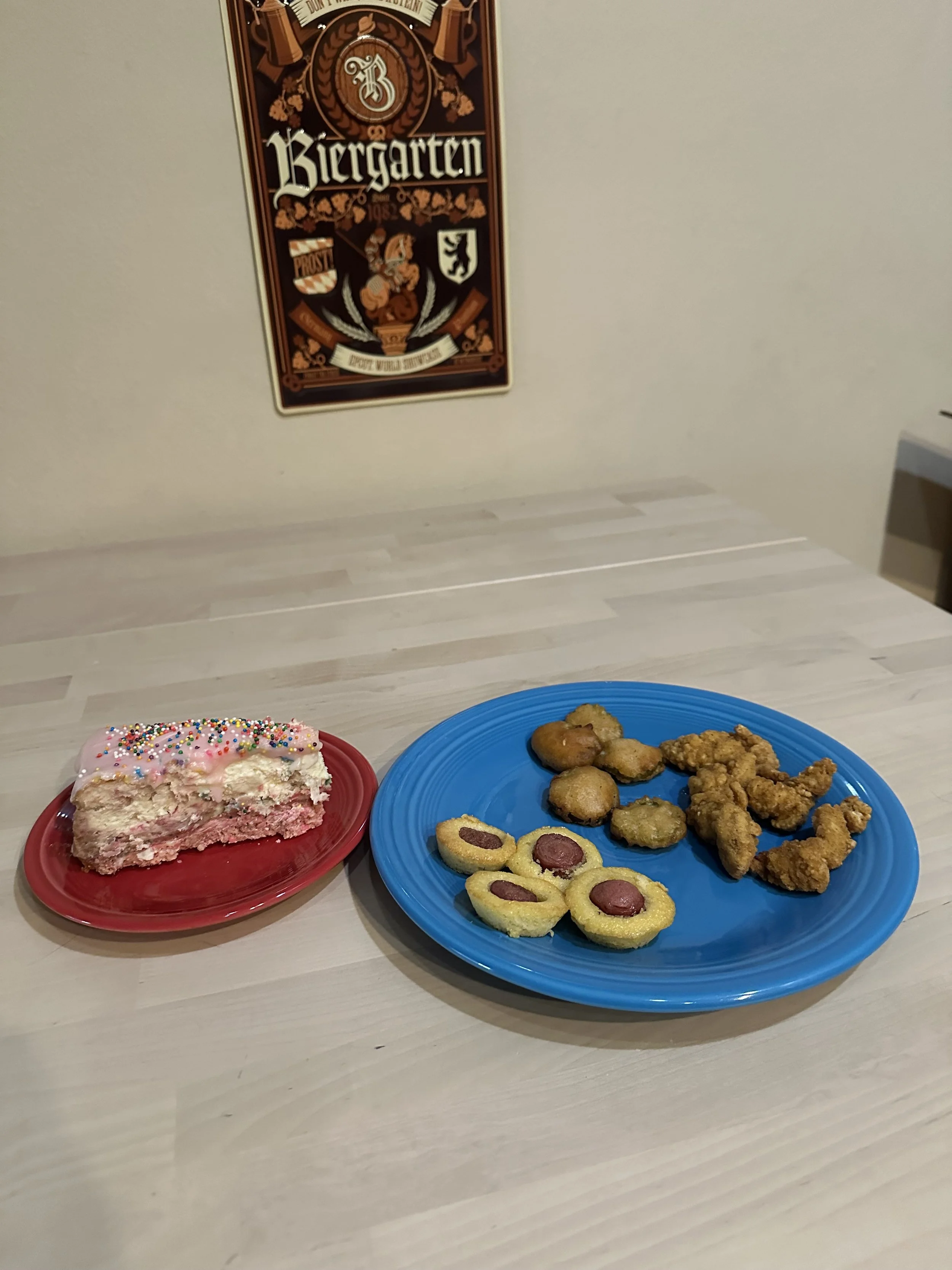 The smell of corn dogs is one that immediately transports me to a fair or carnival in my brain, so I wanted to incorporate that somehow. I ended up finding this recipe: https://www.pinterest.com/pin/827677237804212688/ and they were so easy to make. They are a little addicting because they are so bite sized!