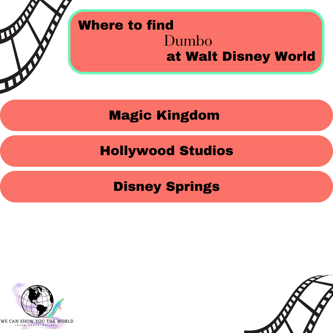 Dumbo appears a couple of times here. Look for a movie poster in the animation history section, and in the theme park section, look up—you might just spot his familiar face.
