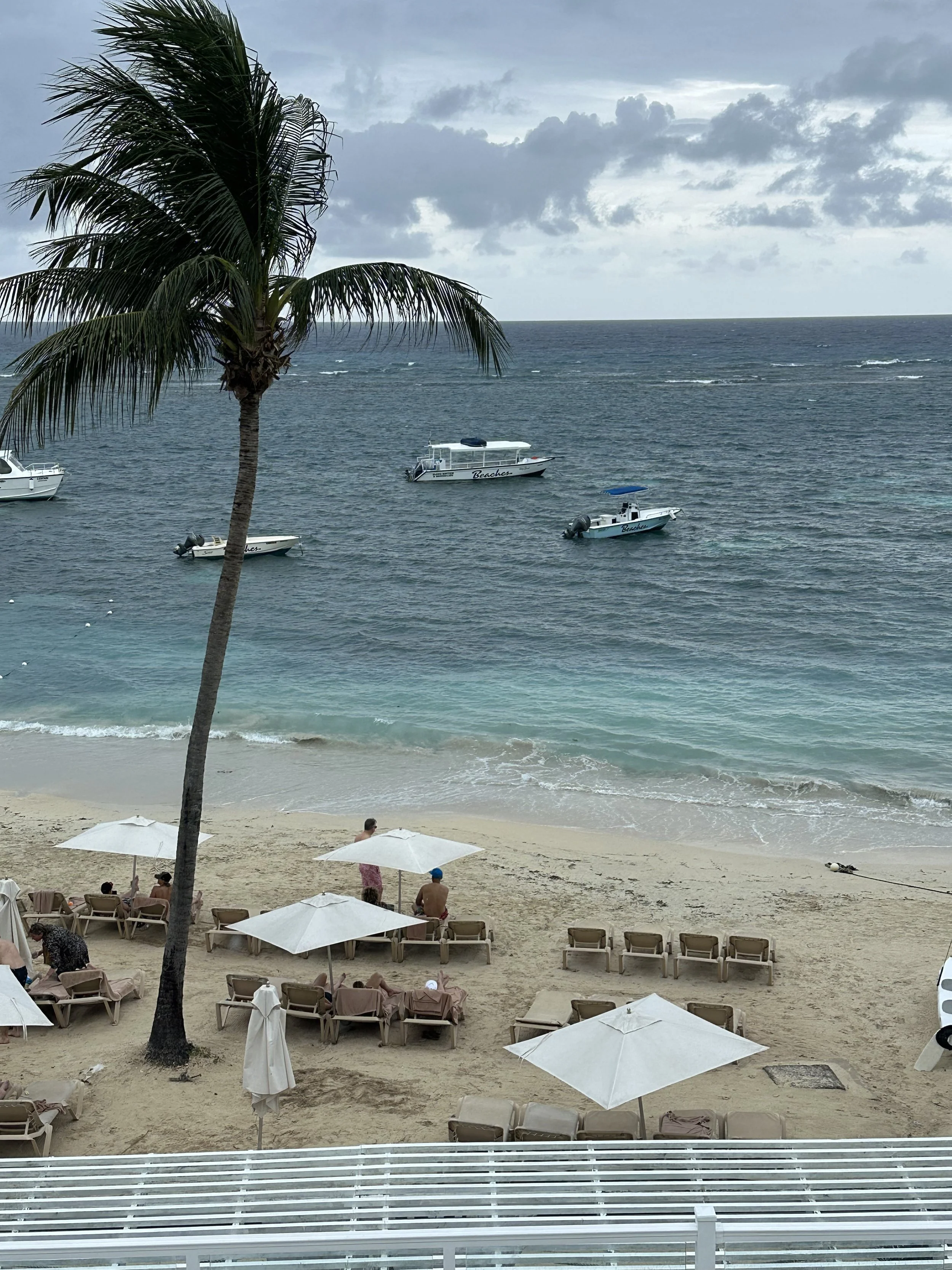 Next up was Sandals Dunn’s River and wow, this one blew me away. It’s the newest Sandals property and honestly, it’s exactly what comes to mind when I think of the brand. This one is officially on my personal bucket list. It was still raining during our visit, so we didn’t get to explore much of the outdoor areas, but what I did see was beautiful. The pool is just steps away from the lobby and looked amazing even in the rain. The highlight? Touring the Sky Terrace Rondoval Suites, which completely made my day.