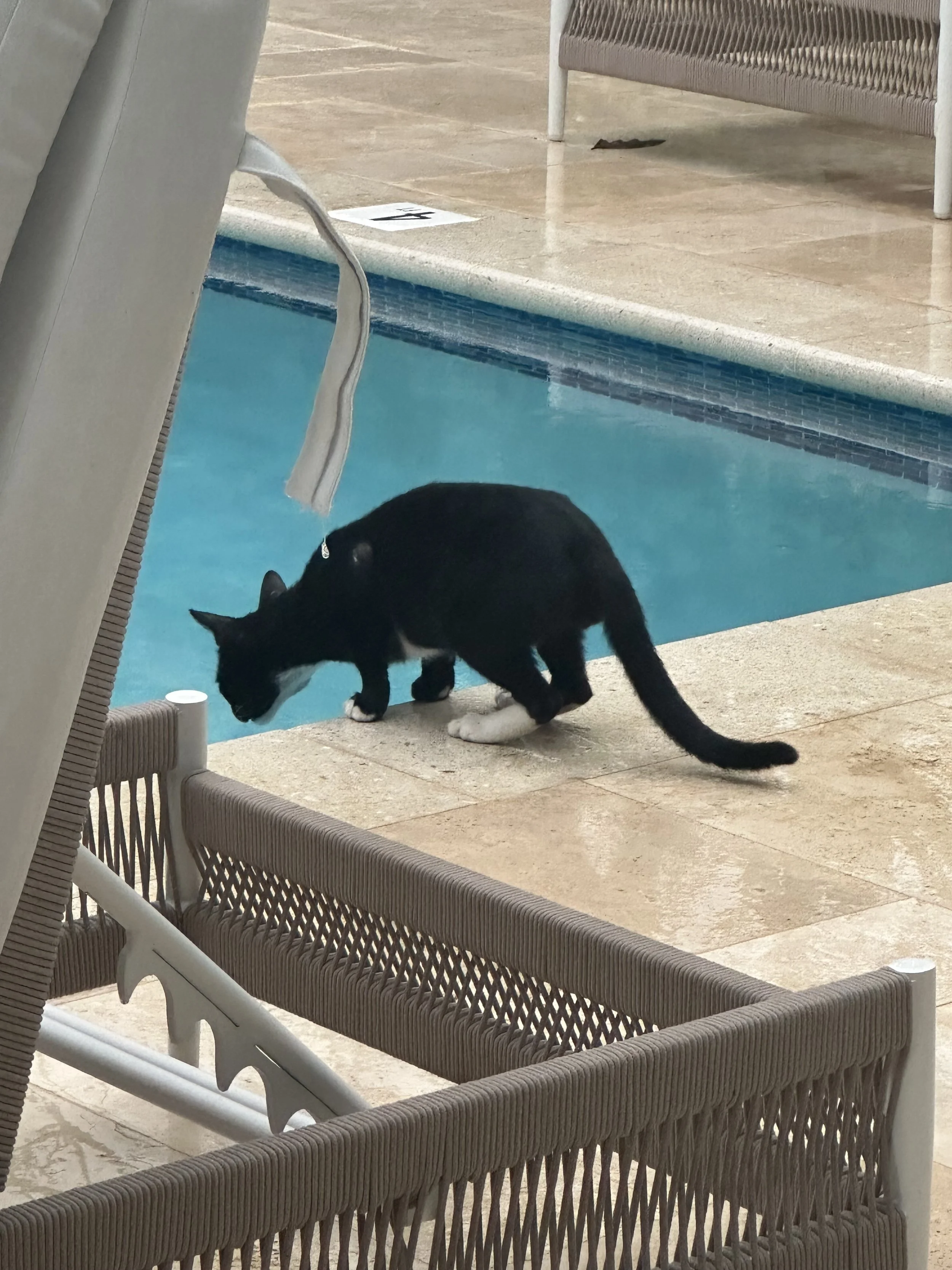 Once we wrapped up for the day, I headed back to my room to catch up on some business tasks. It was still raining, but I did sneak outside briefly to visit the cat that had been hanging around outside my room.