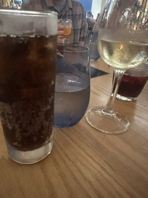 For those who don’t know, I proudly claim “Beverage Goblin” status at most meals, meaning I’ll have three drinks at once: water, Diet Coke, and a cocktail (in this case, wine). Another fun fact: when I travel internationally, caffeine becomes a struggle. I don’t drink coffee, and many countries don’t have Diet Coke. I live for Diet Coke, and Coke Zero is not an acceptable substitute. I’ve even started assigning someone to remind me to drink it if it's all that’s available, because without caffeine I start to zone out quickly and get crabby. It’s a real thing.