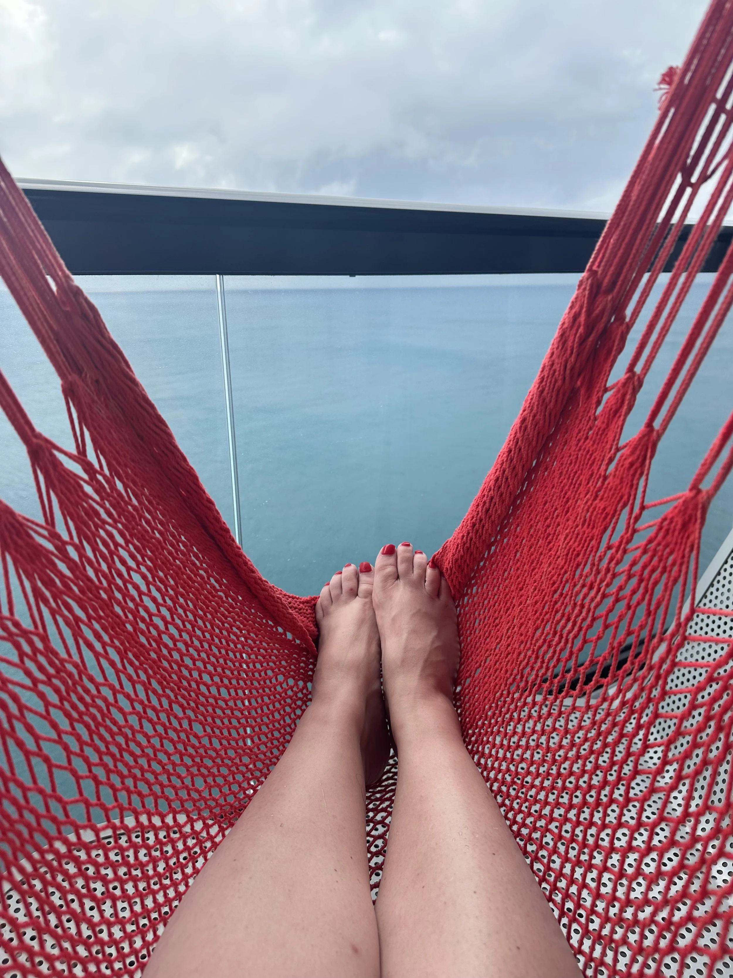 The clouds started to get even darker, so I opted to head back to the ship early so I could shower and rest before dinner. I also wanted to have some more hammock balcony time. I'm telling you; I'm obsessed with that thing. When I go back and do another sailing, I will budget more time in for this hammock.